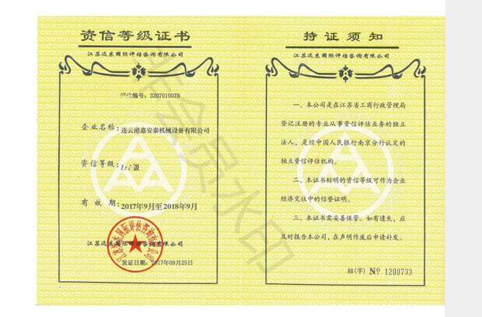 • 資信等級證書